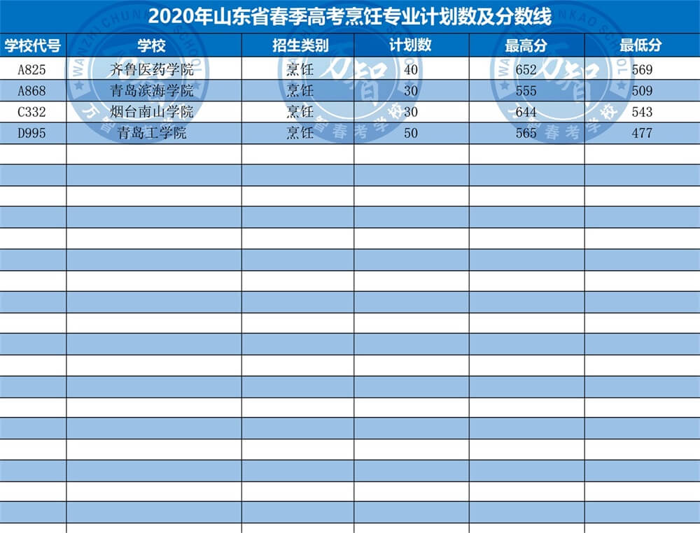 2020年山东省春季高考农林果蔬专业计划数及分数线