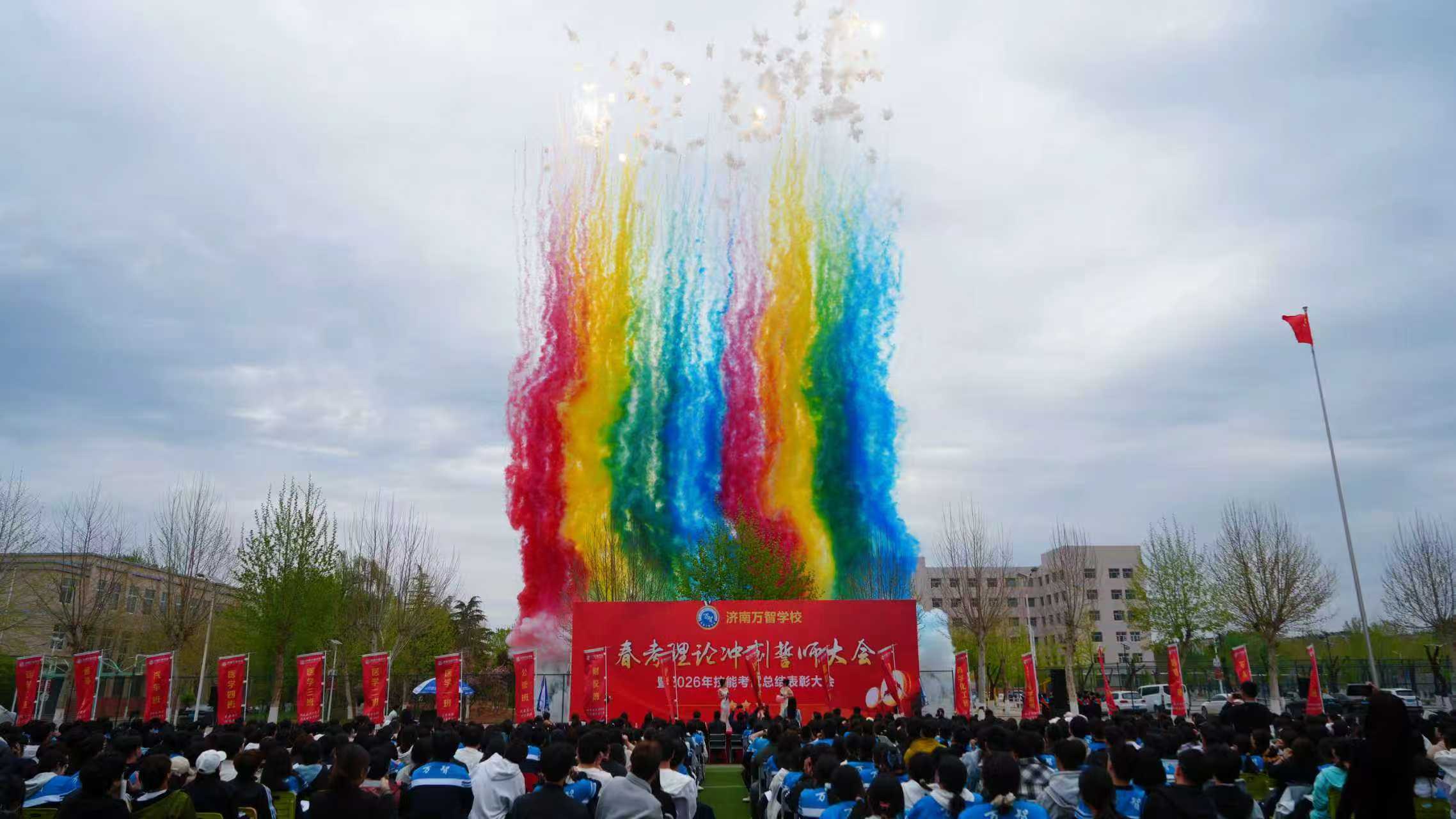 拼搏在今日,冲锋正当时;三年磨一剑,决胜在春考。2026年4月8日下午,济南万智学校春考理论冲刺誓师大会暨20...