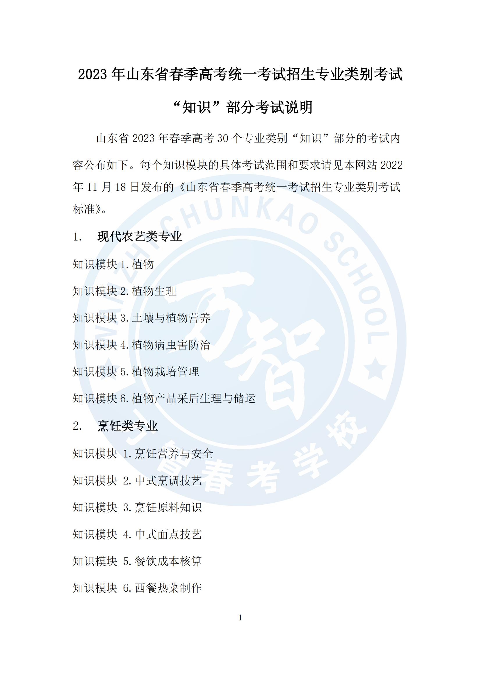 1月6日山东省教育招生考试院发布了2023年山东省春季高考统一考试招生专业类别考试知识部分考试说明,并在说...